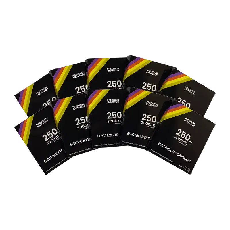 Our blister-packed capsules are ideal when you're relying on water from feed stations at events, if mixing up drinks during your longer activities isn't practical, or if you prefer plain water to even the mildest of sports drinks. They're also useful for topping up the electrolyte content of other drinks. 15 capsules per box, 250mg of sodium per capsule. Swallow with water.